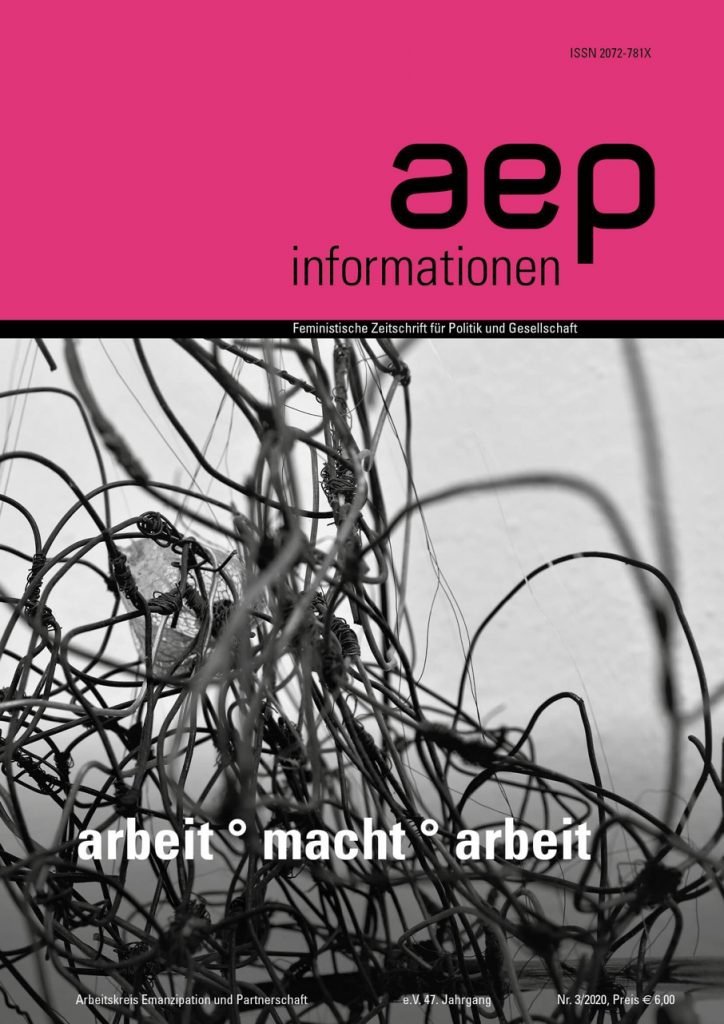 arbeit macht arbeit – so nennen Sabine Prokop und Andrea Strutzmann den Schwerpunkt in der jüngsten Ausgabe der AEP Informationen und folgen dabei der deutschen Soziologin und Philosophin Frigga Haug und ihrem „Vier-in-Einem“-Modell. Die Corona-Krise bringt neue Dynamiken und Gewichtungen in das Spannungsfeld von Erwerbsarbeit, Sorgearbeit, Arbeit an der Selbstentfaltung und politischer Arbeit: Corona-Kurzarbeit, Home Office, Tele-Konferenzen, Kooperationen im virtuellen Raum. Wie wirkt sich das auf die Ungleichheit zwischen den Geschlechtern aus? Viel Stoff zum Nachdenken und Diskutieren. Die künstlerischen Arbeiten, die die spannenden Beiträge rahmen, stammen von Karin Hatwagner, die in Collagen Dinge des Alltags in unerwarteter Kombination zueinander bringt.
