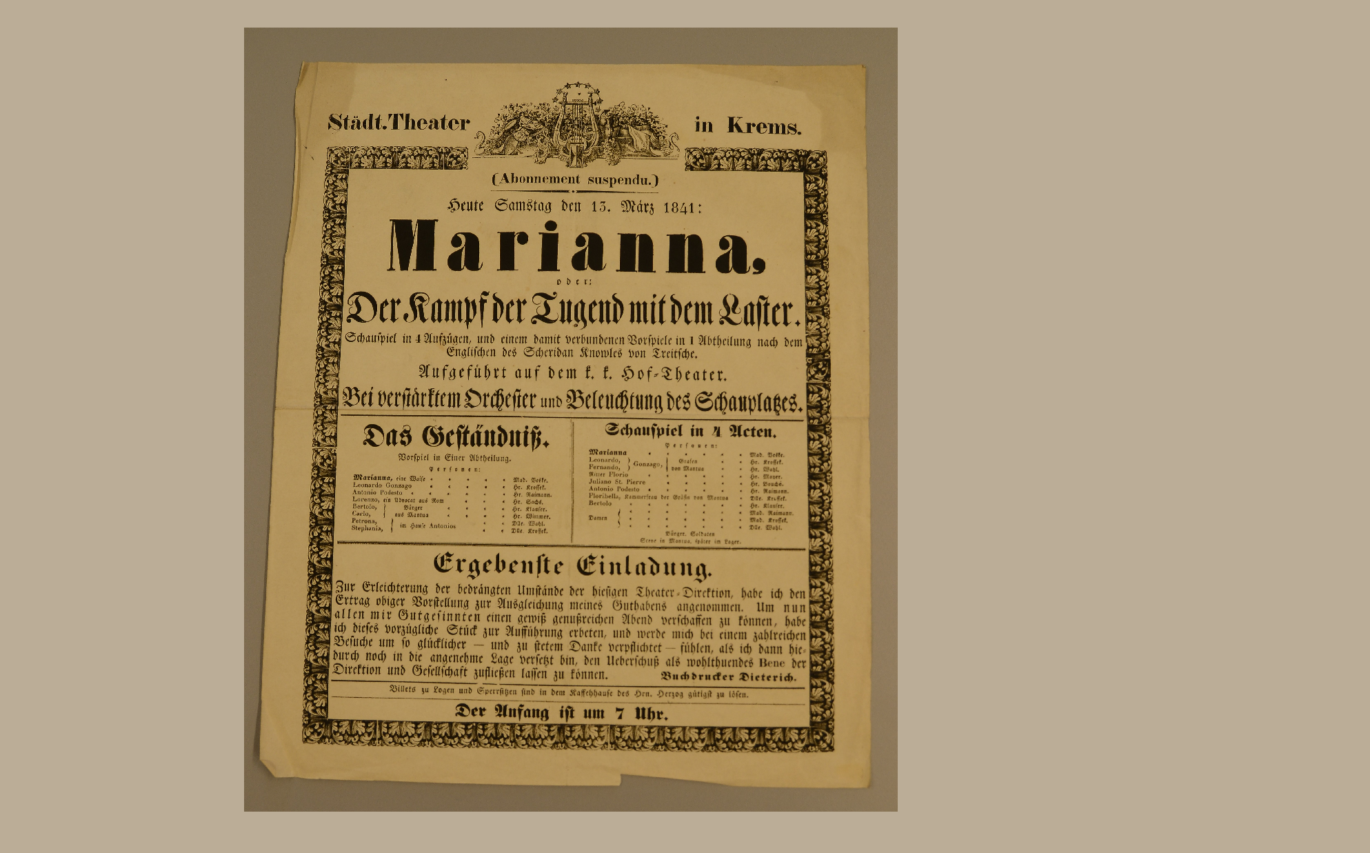 Bild: Theaterzettel aus dem Stadtarchiv Krems.
