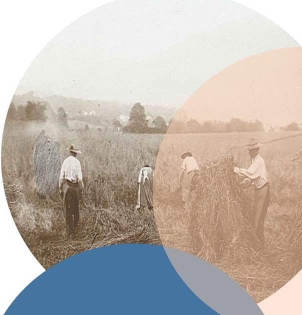 Bild: Getreideernte bei Altmünster (Österreich), 1900. Foto: Philipp von Württemberg, Quelle: Wikimedia Commons, Bearbeitung: Li Gerhalter.